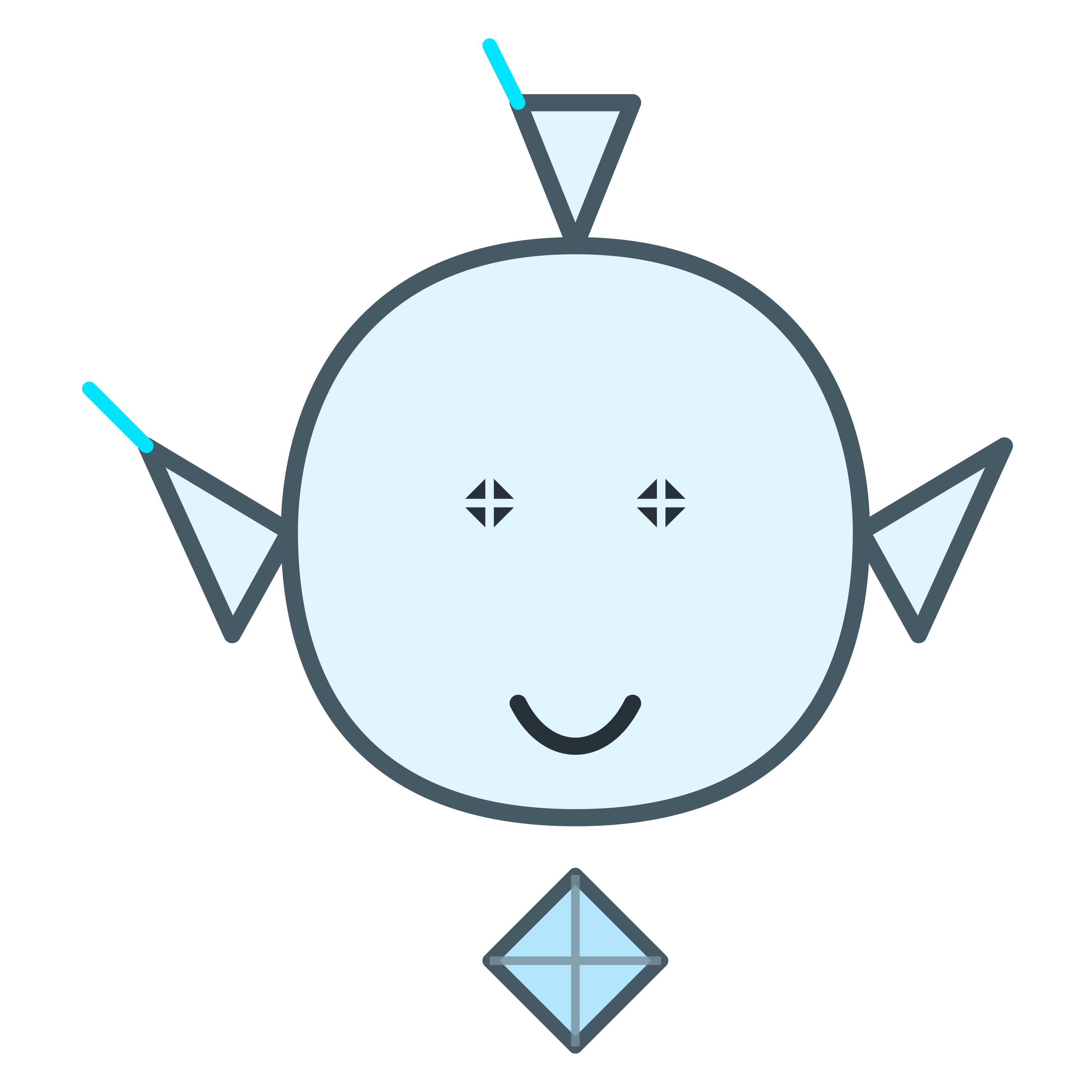 実務担当青いボディ。指示に忠実で、情報収集や伝達を冷静にこなす基本モデル。