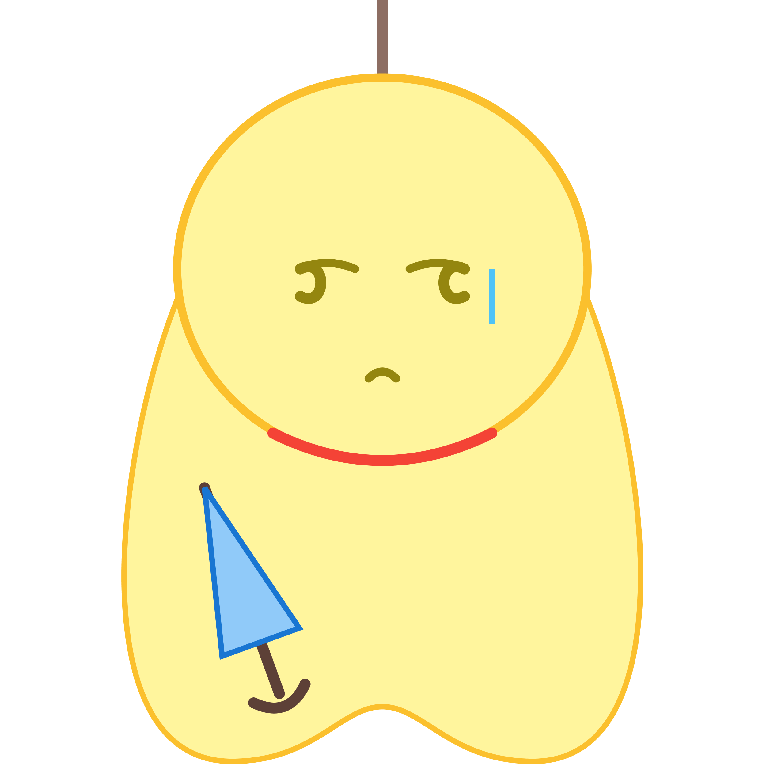 てるてる坊主スタイル: 雨の日でもみんなの心は晴れるように、という願いの姿。頭のアンテナで気圧を受信している。